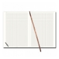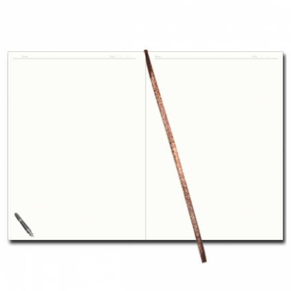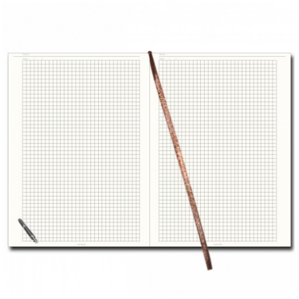 Papier chamois, 80g/m2. Wkład notesu posiada szyte i klejone kartki w kratkę, linię lub czysty, sztywną okładkę oraz brązową wstążkę. Wkład notesu o wymiarze 18,7x25,7 cm.