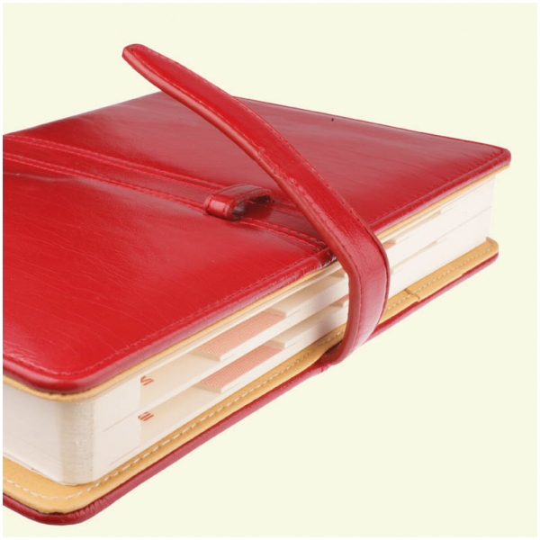 Oryginalna jednobarwna okładka z wąskim zapięciem na pasek z wsuwką dostępna w trzech wersjach kolorystycznych: czerwonym, brązowym oraz czarnym. Doskonale nadaje się do tłocznia.
